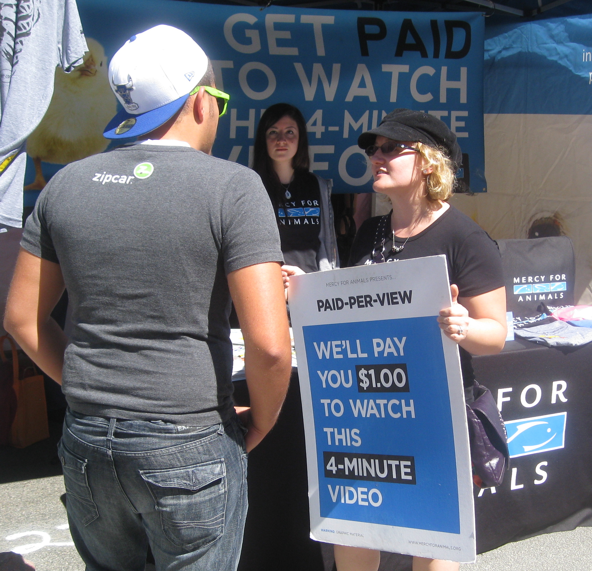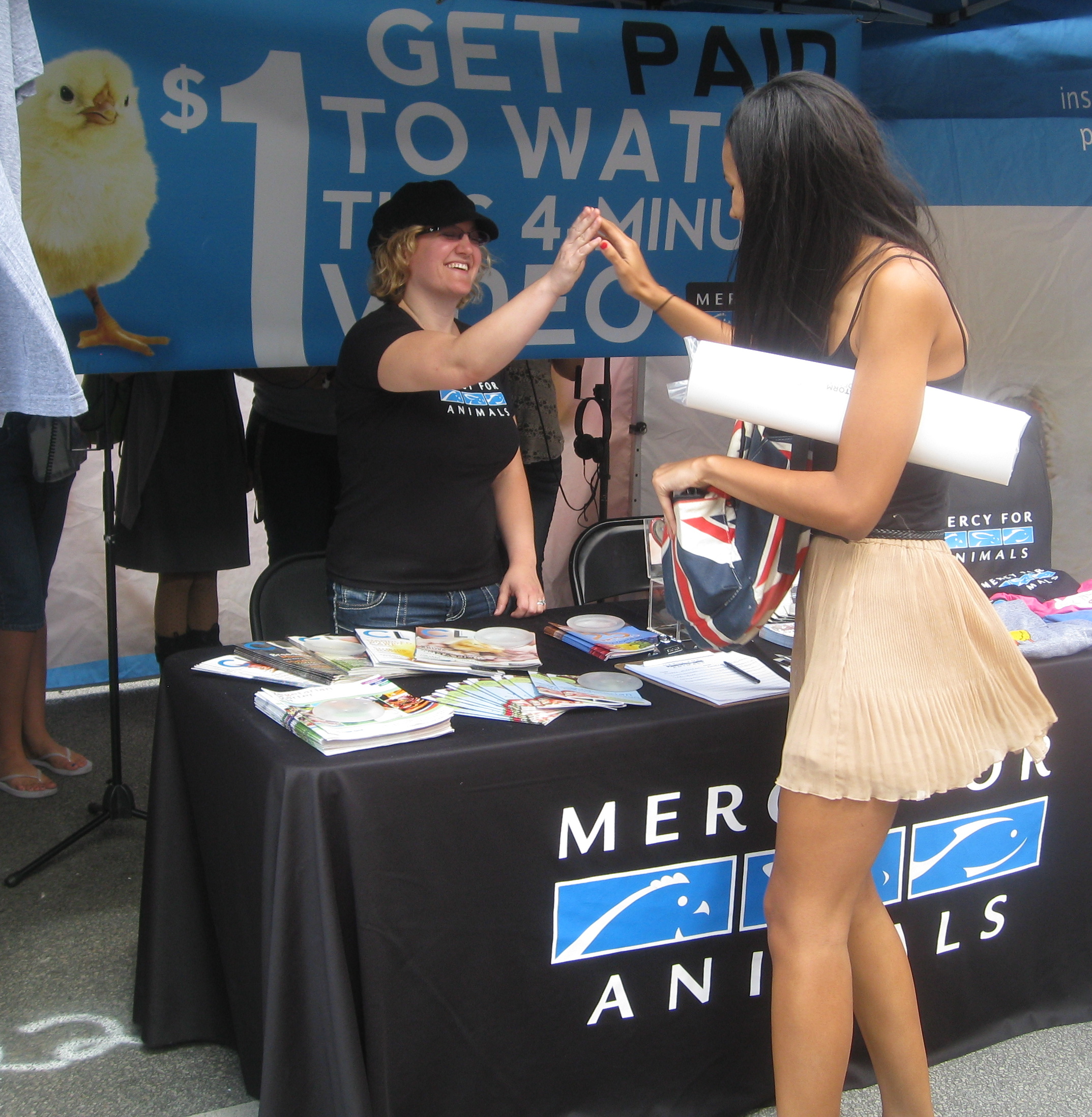 There are a lot of positions to fill when tabling for Mercy For Animals.